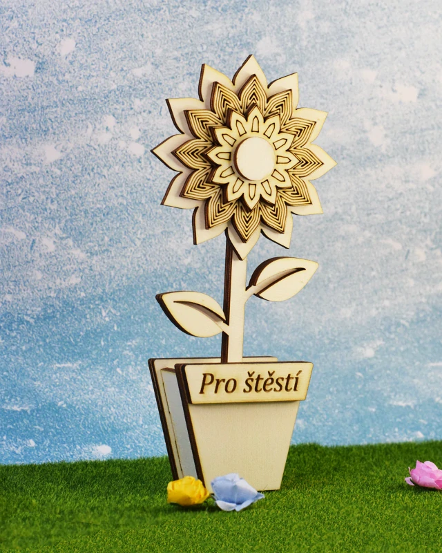 - Dekorace květina v kvetináči - Pro štěstí