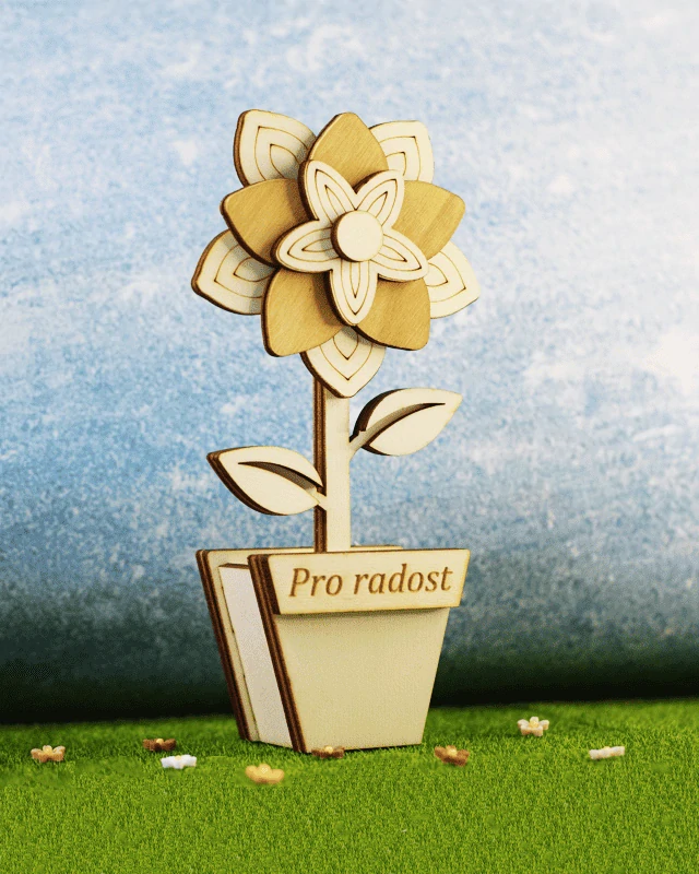 Udělejte si radost květinou, která nepotřebuje žádnou péči! Naše dřevěná květina v květináči nepotřebuje vodu, slunce, dokonce ani ždánou jinou péči!